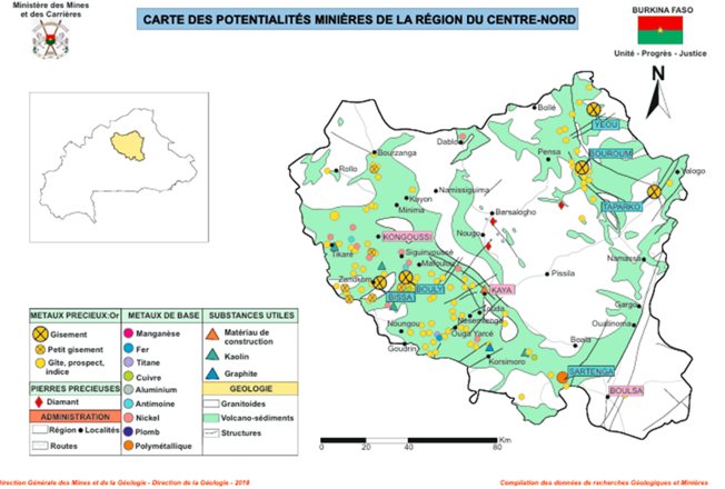La région des Koulsé, située dans la partie centre-nord du Burkina Faso, est connue pour ses potentialités minières, notamment l’or, exploité aussi bien de façon industrielle qu’artisanale (orpaillage). Ces activités minières contribuent à l’économie locale par la création d’emplois et la génération de revenus. La Région est dominée par des roches des formations volcaniques et volcano-sédimentaires de la ceinture de Kaya-Goren. Les potentialités de la région, selon les compilations de la Direction Générale des Mines et de la Géologie, établi en 2018 : le métal précieux reste l’Or, avec les mines de Bissa, Bouly, Taparko et les métaux de base sont dominés par le Nickel, dont le plus intéressant est celui de Dablo.